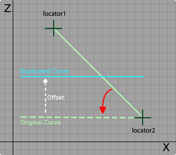 The original curve is duplicated and offset by a value defined by the used to control the width of the bridge. (Y-Up coordinate system)
